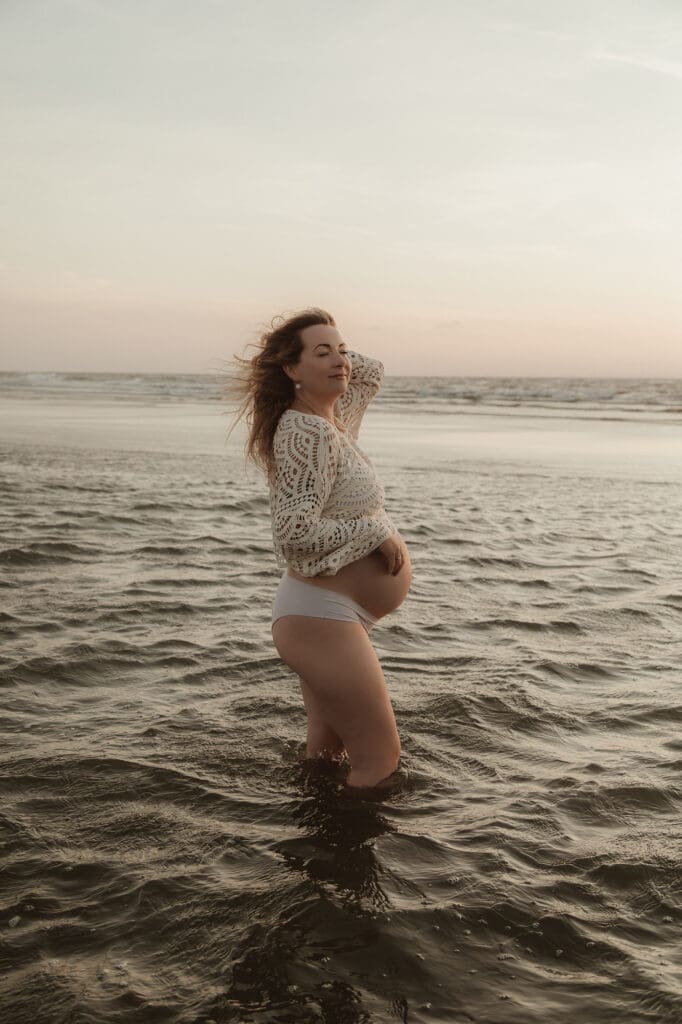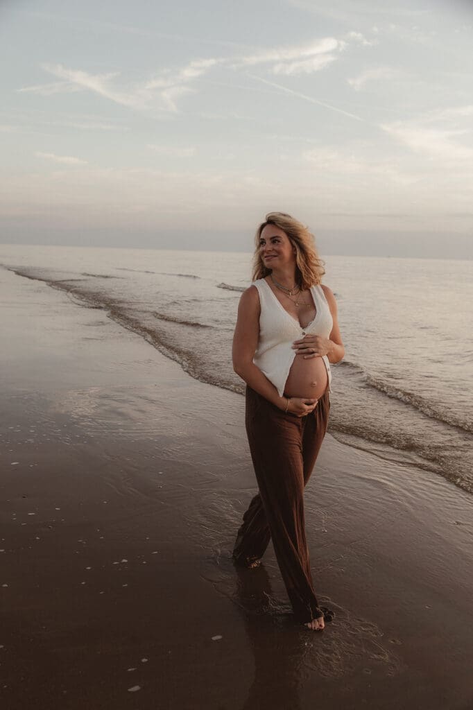 Juist daarom is een zwangerschapsshoot op het strand van Noordwijk zo mooi. Geen poespas. Geen studio. Gewoon jij, je mooie buik en de rust zee.